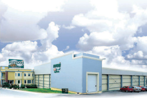 Configuration of an air-conditioned vegetable handling area and a shipping ramp.